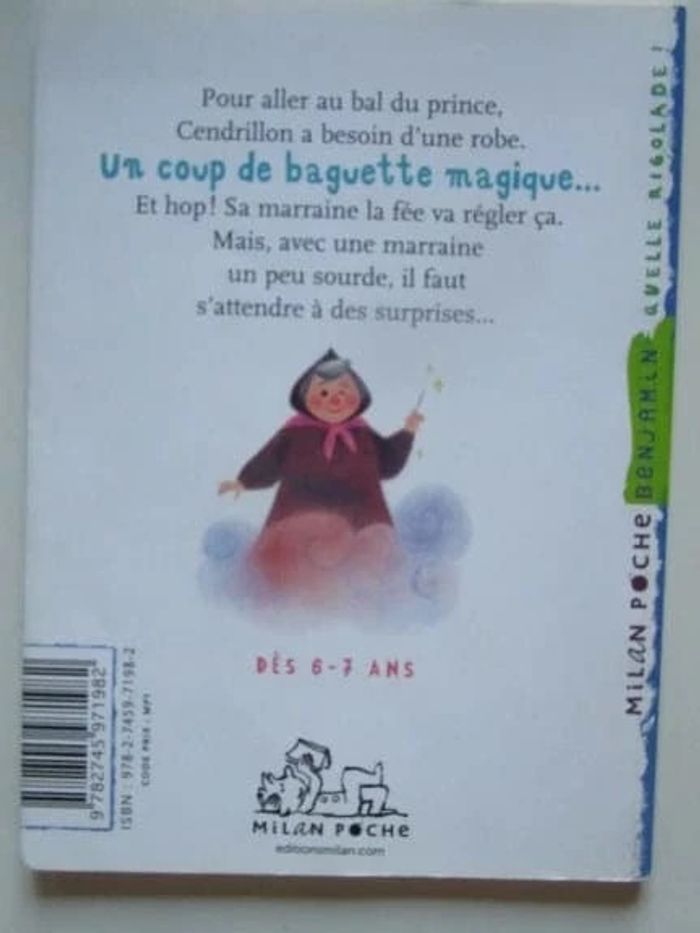 Le prince Hubert organise un bal... ce soir ! Vite, Cendrillon doit se préparer. "Allô, marraine la fée ?" Éditeur ‏ : ‎ Milan Jeunesse Âge lecture ‏ : ‎ 6 - 9 ans Dimensions ‏ : ‎ 13 x 0.5 x 18 cm Livre en très bon état Je vends d'autres livres premières lectures #phil_peg_premièreslectures ou sur les contes #phil_peg_contes, #phil_peg_milanbenjamin #contesdétournés #cendrillon#bal #contes