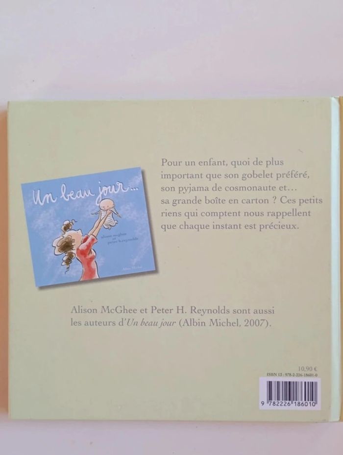 Pour un enfant, quoi de plus important que son gobelet préféré, son pyjama de cosmonaute et... sa grande boîte en carton ? Ces petits riens qui comptent nous rappellent que chaque instant est précieux. Éditeur ‏ : ‎ Albin Michel 40 pages Âge de lecture ‏ : ‎ 3 - 6 ans Dimensions ‏ : ‎ 21 x 20 cm Livre en bon état #momentprésent #instantprésent