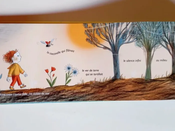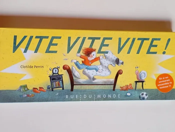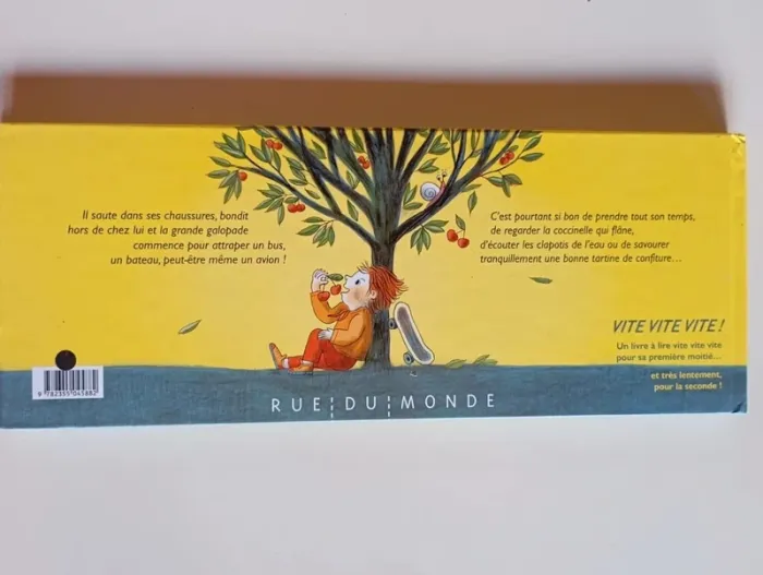 Il saute dans ses chaussures, bondit hors de chez lui et la grande galopade commence pour attraper un bus, un bateau, peut-être même un avion ! C'est pourtant si bon de prendre tout son temps, de regarder la coccinelle qui flâne, d'écouter les clapotis de l'eau ou de savourer tranquillement une bonne tartine de confiture… Éditeur ‏ : ‎ Rue du Monde 24 pages Âge de lecture ‏ : ‎ 6 - 8 ans Dimensions ‏ : ‎ 13 x 32 cm Prix éditeur : 15€ Livre en très bon état Je vends d'autres livres de la collection Rue du Monde #phil_peg_ruedumonde #ruedumonde #temps #vitesse