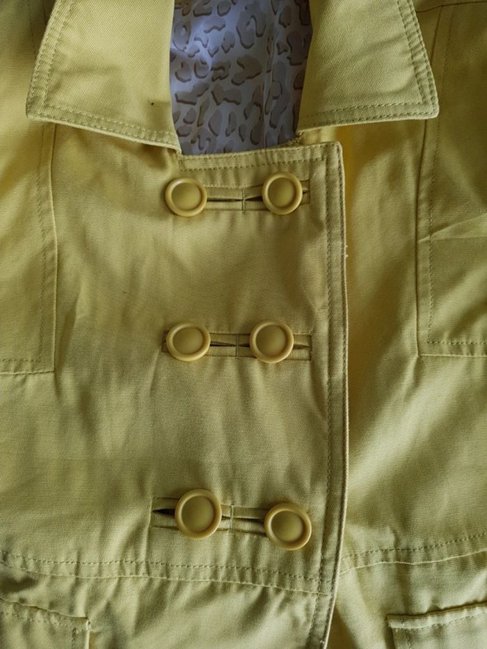 Tous mes articles Benetton : #benettonsev Toutes mes vestes : #vestesev Tous mes habits taille XXL : #xxlsev Veste / manteau Marque : UNITED COLORS OF BENETTON Couleur : jaune Taille : 44 Largeur de la veste d'aisselle à aisselle : 50 cm, à la taille : 52 cm État : très bon état 100% coton Doublure : 100% polyester Retrait sur place ou envoi.