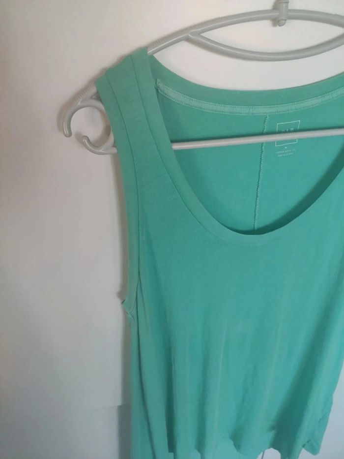 Débardeur plus long devant que derrière. Bien porté, plusieurs défauts à noter : une tâche blanche au centre et une en bas avec une petite tache noire à l'intérieur. Il est délavé à l'encolure et aux aisselles. Bref, état satisfaisant mais encore sympa à porter. Acheté en magasin Gap, taille M. 100 % coton. Longueur devant 69 cm, derrière 81 cm. #vulariFemmesM38 #vulariGap