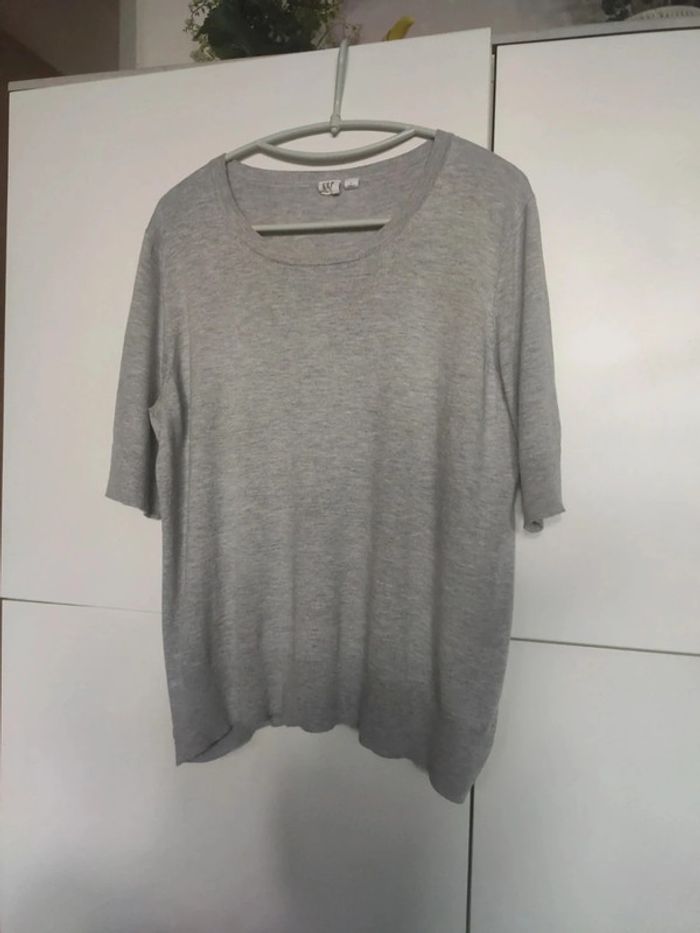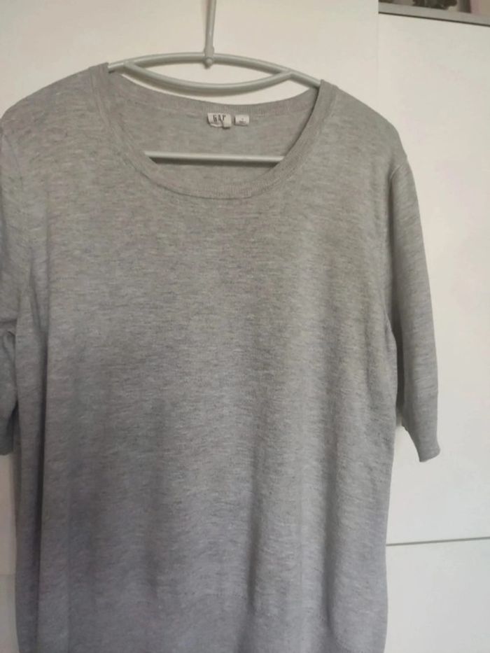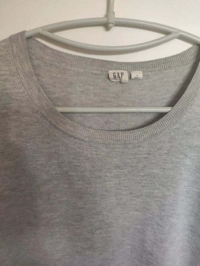 Bon état, un tee shirt pull dans une matière comme un sweat fin, porté, quelques petites bouloches, taille M, acheté en magasin GAP, gris chiné #vulariFemmesM38 #vulariGap