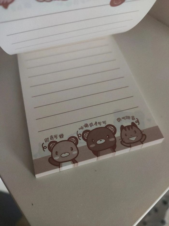 Carnet de notes neuf, encore dans son emballage, je l'ai sorti juste pour le prendre en photo. Dimension 7,4 cm x 10 cm. Les feuilles à l'intérieur sont toutes identiques, imprimé recto-verso. Acheté en Corée. Kawaii ! #vulariKawaii