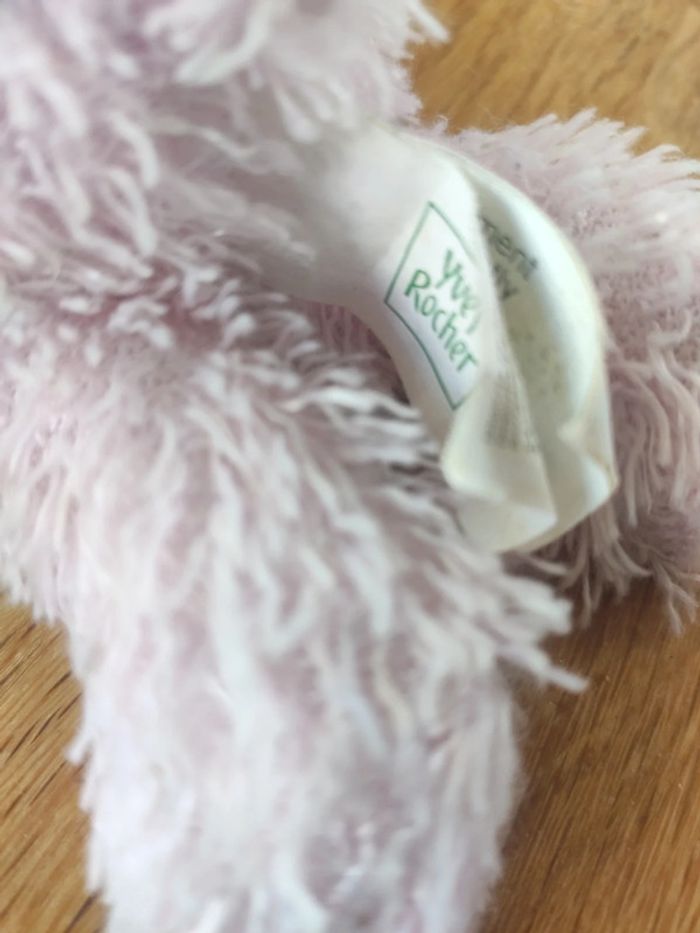 Peluche toute douce Yves Rocher. 23 cm de hauteur. Il faudra lui faire faire un petit tour dans la machine à laver