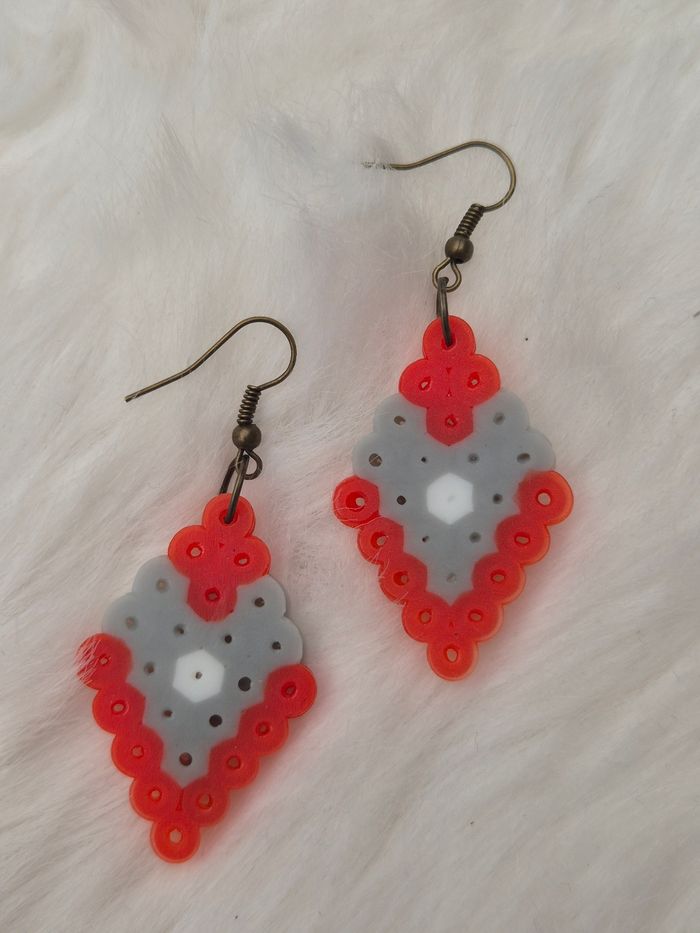 Boucles d’oreilles Perles a repasser grise blanche et rouge ⚪️🤍🔴 - Boucles - Perles - Couleurs