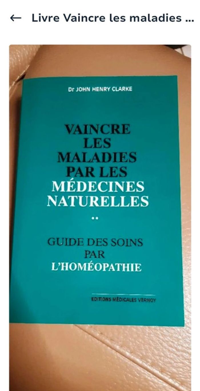 PRIX DE VENTE FERME MERCI Livre "Vaincre les maladies par les médecines naturelles" Guide des soins par l'homéopathie Ouvrage rare Du Dr John henry clarke Éditions médicales Vernoy Imprimé en Hollande Athena et idegraf 1988 et 1996 Le livre n'a jamais été ouvert hormis pour les photos. Petites marques liées au stockage voir dernières photos