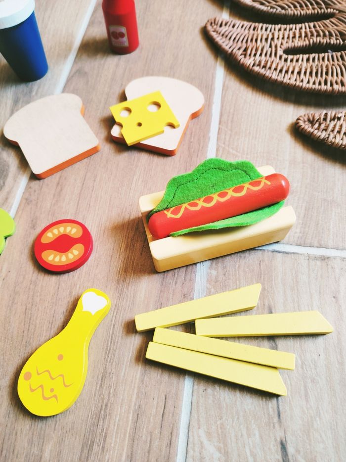 🍟Dinette fast food hot dog pizza et aliments divers en bois JB1169