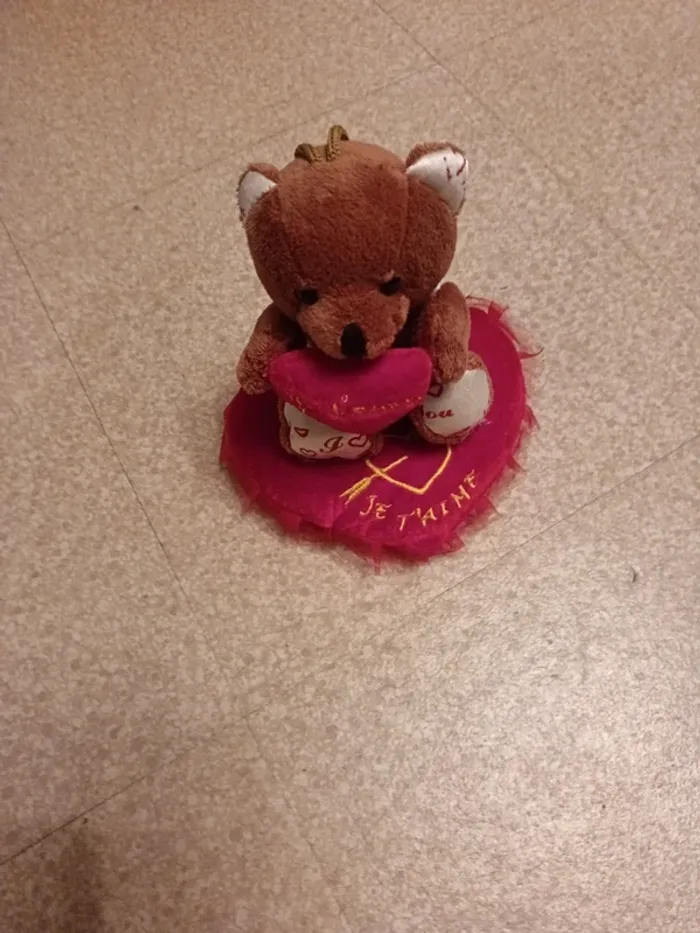 Peluche avec un nounours un cœur qui est marqué je t'aime