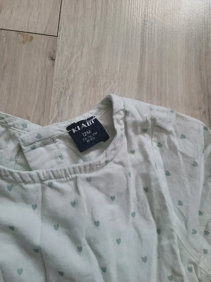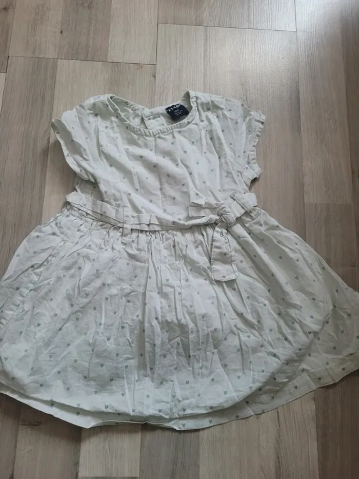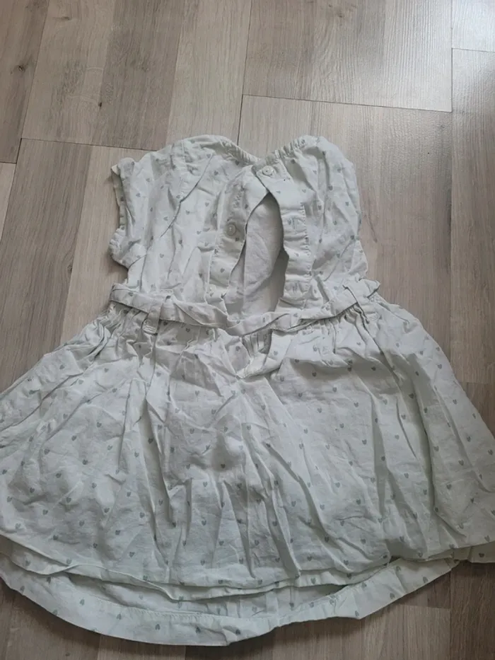 Robe vert d'eau à motifs cœurs. Ceinture à nouer. Très bon état.