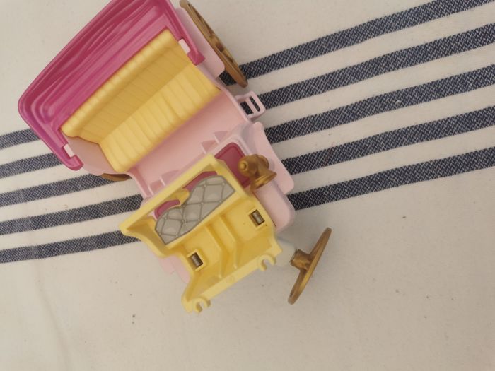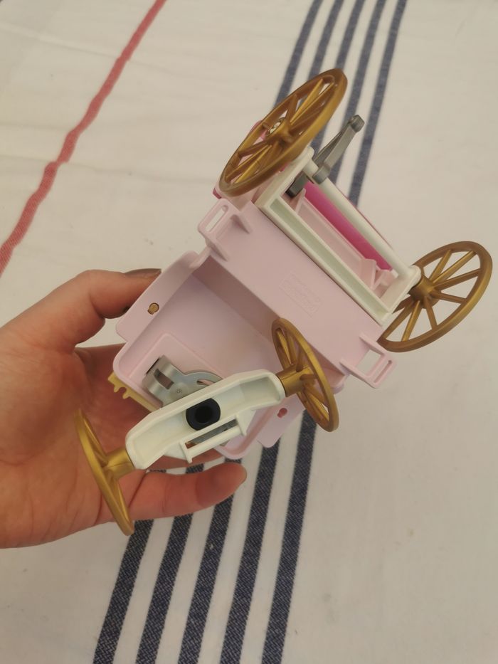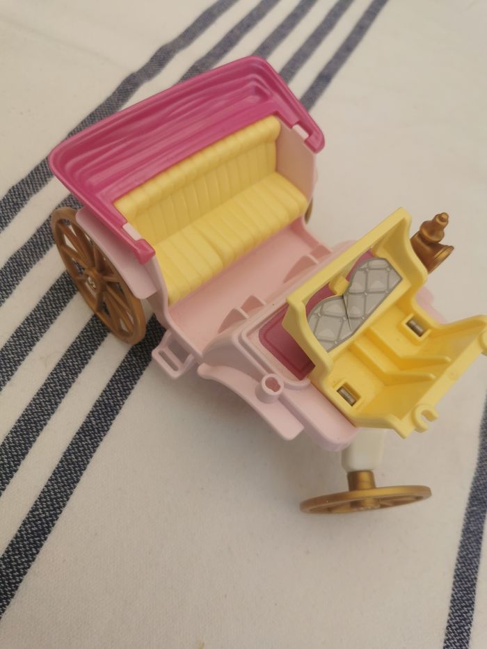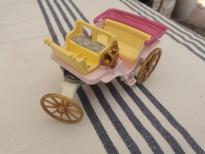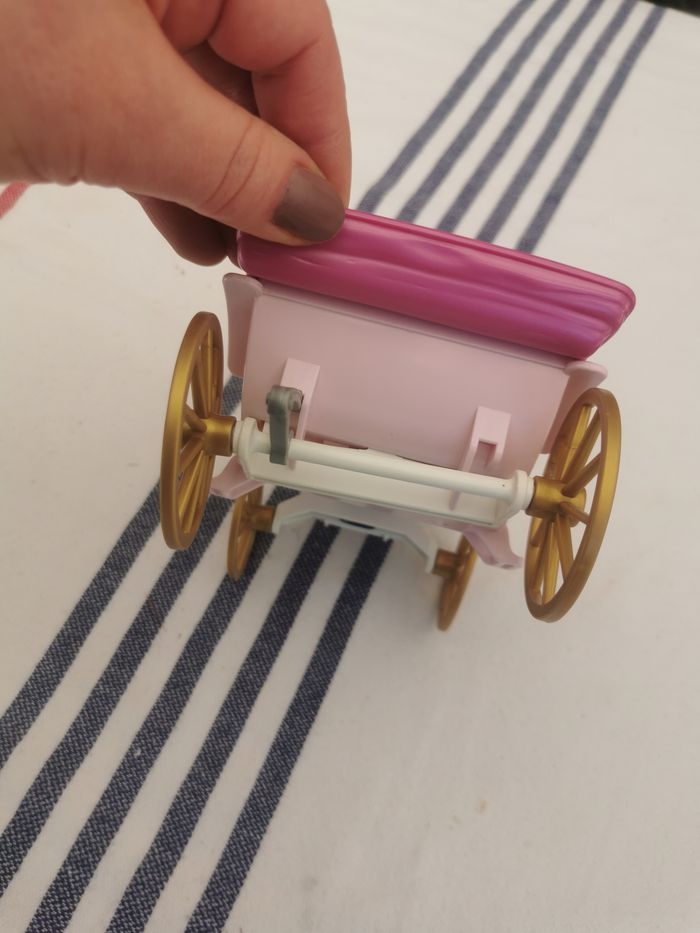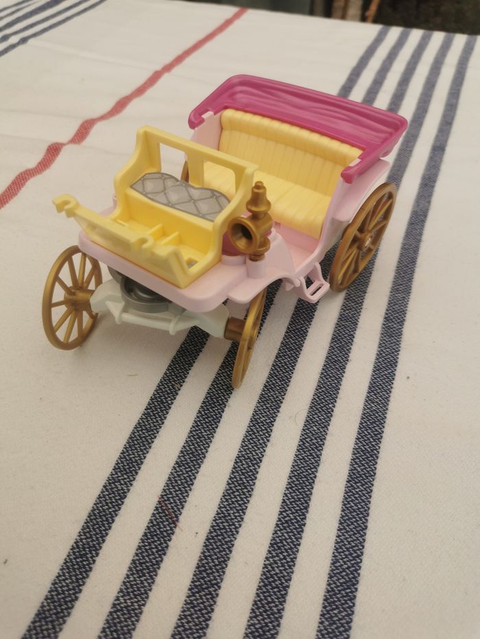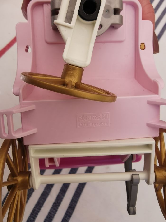 Calèche nuptial Playmobil 1999, en plastique, en très bon état général, il manque les éléments, j’ai juste cette pièce-là, taille 14x9x7,5cm, poids 70g.