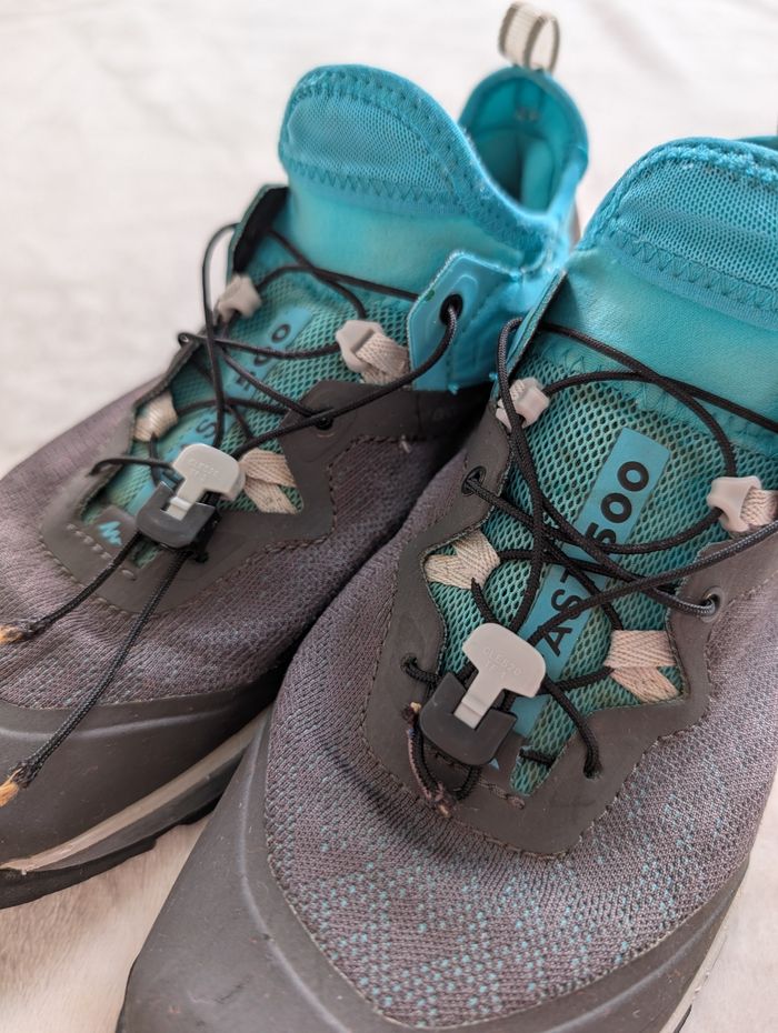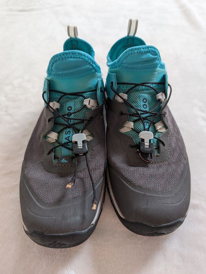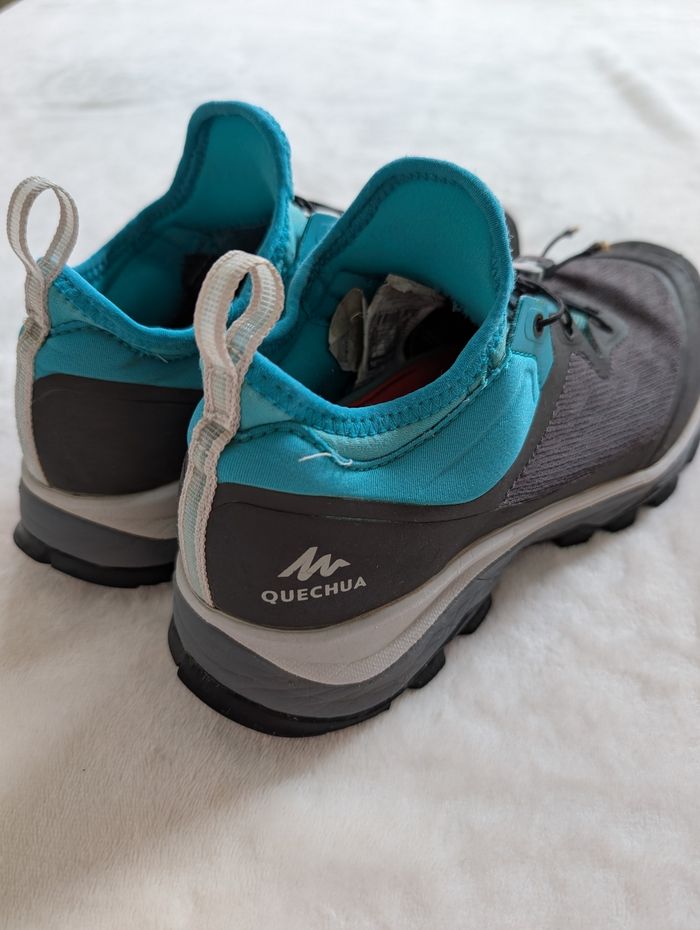Chaussures de rando et de trail Marque Decathlon Quechua Modèle FAST 500 (FH500) grey/green Couleur : vert d'eau/turquoise et gris Très bon état, très peu utilisées