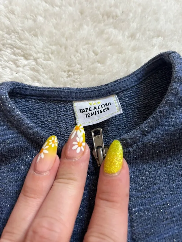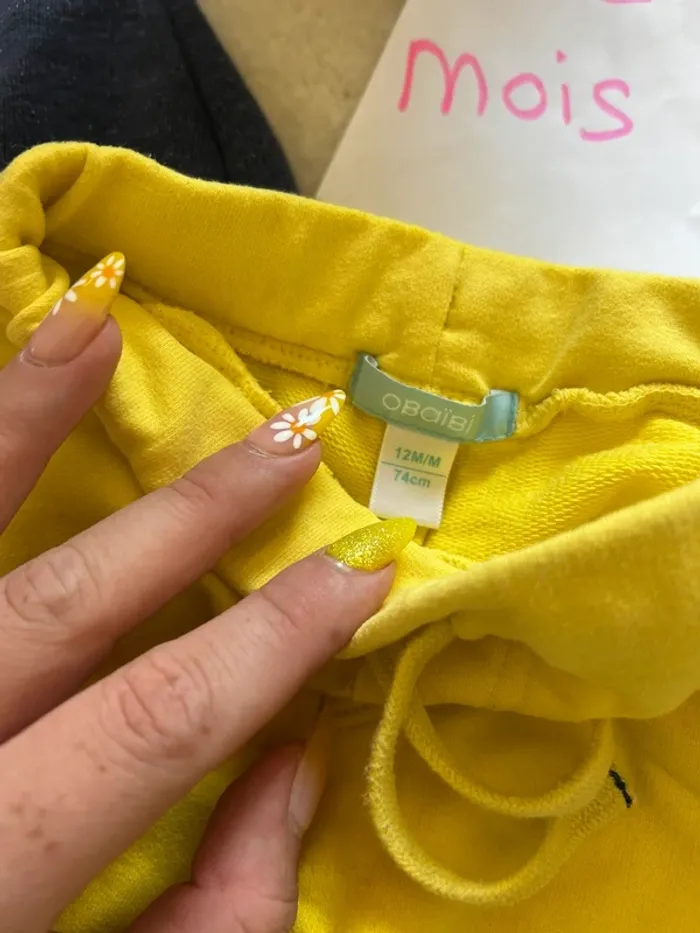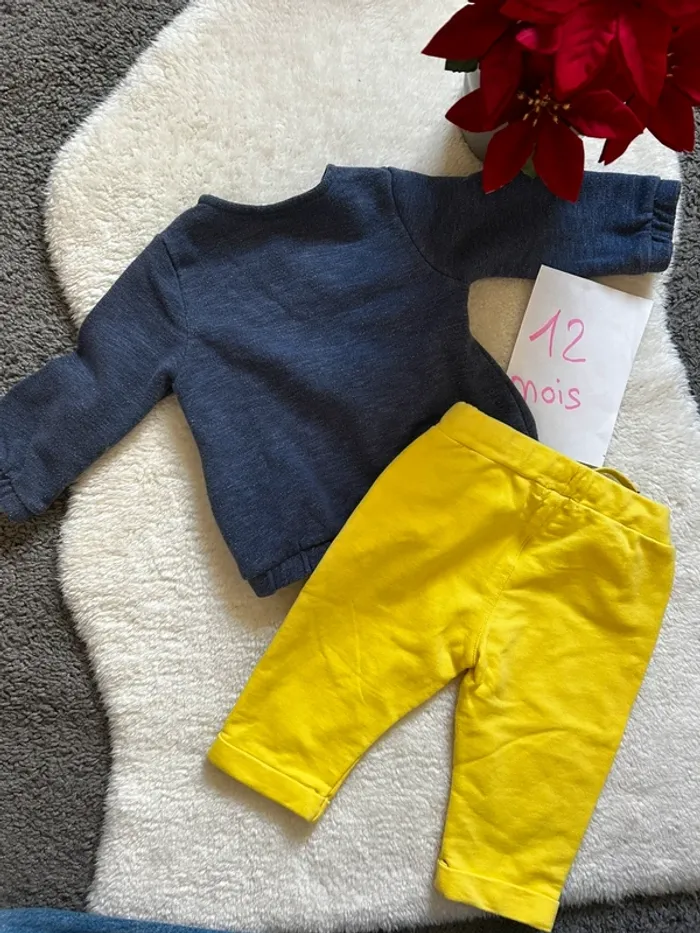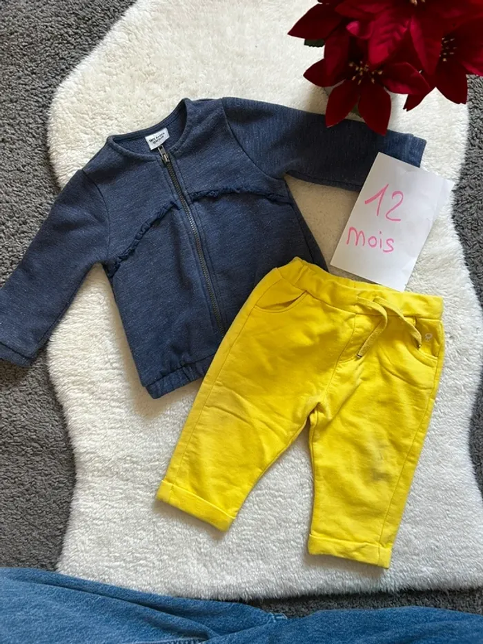 Ensemble avec Son gilet a zip tape à l’œil Sin pantalon jaune obaibi Taille 12 mois En tres bon état #charlinelolfille12mois N’hésitez pas si vous avez des questions