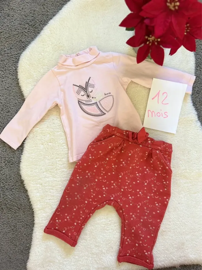Ensemble avec Son haut rose a motif renard orchestra Son bas rose fonce tape à l’œil Taille 12 mois En tres bon état #charlinelolfille12mois N’hésitez pas si vous avez des questions