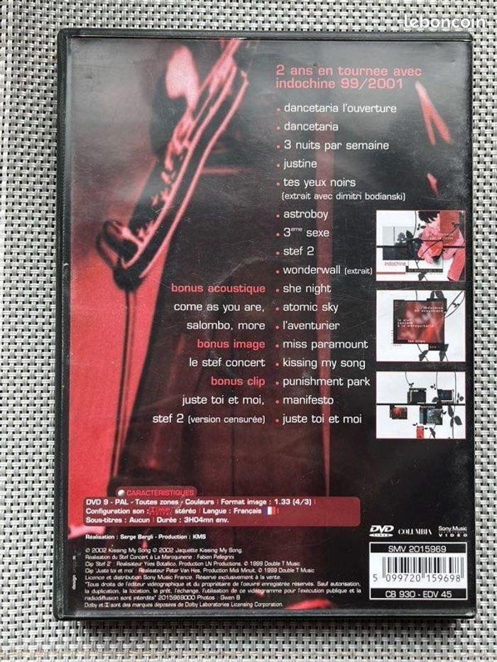 Vends DVD d’Indochine « les divisions de la joie ». Le boîtier est en excellent état. Le DVD présente de légères traces mais rien d’important. Fonctionne parfaitement. Il pèse 107g. Idéal pour les amateurs de musique, fans du groupe ou collectionneurs