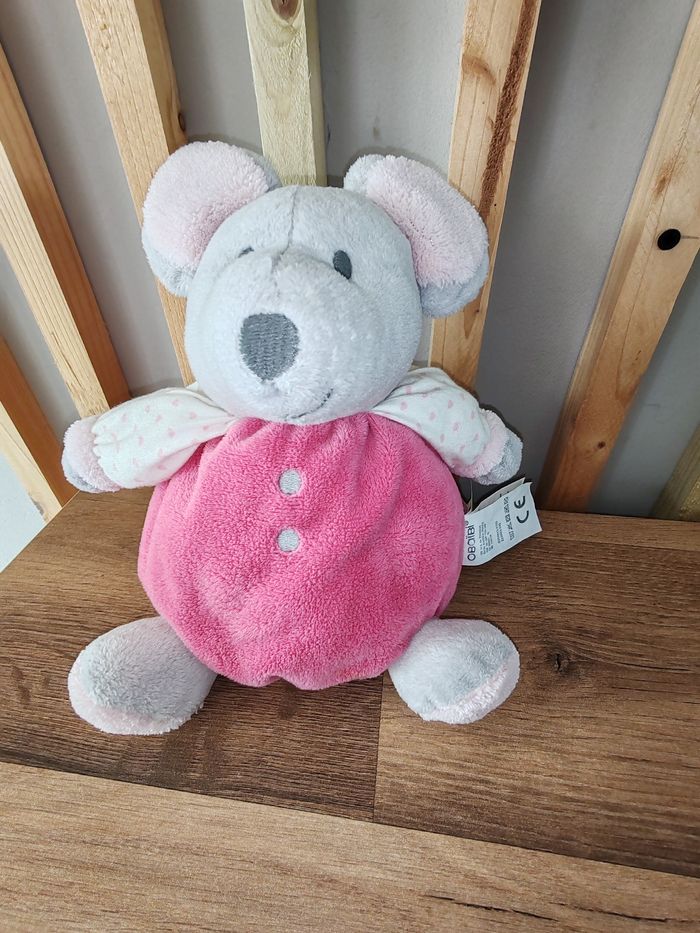 OKAIDI OBAIBI SOURIS GRIS CORPS BOULE ROSE COEUR Souris, doudou Okaidi Tbe Étiquette marque présente 12.90 euros Envoi en relais