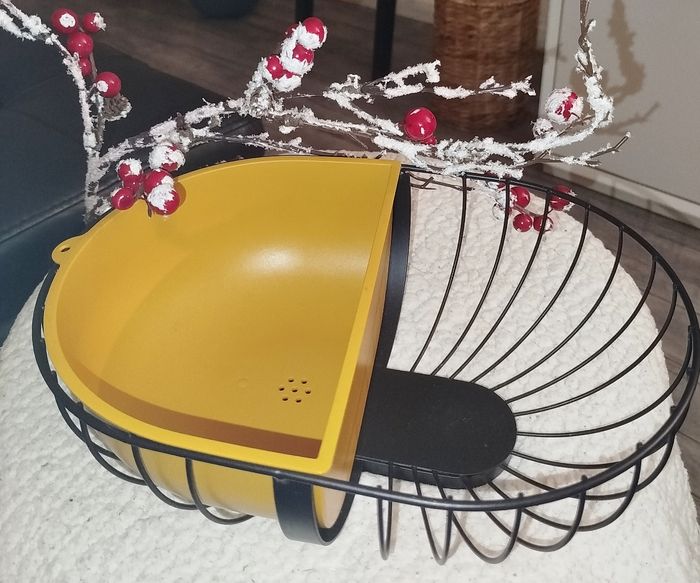Corbeille à fruits🍊🍉🍋 en métal noir avec compartiment amovible moutarde pour y déposer 🍌🍒🥝les fruits les plus fragiles Dimensions: L. 32 x P. 21,2 x H. 10,5 cm . 🍊🍓🍒Acheté chez Amazon au prix de 10,99€