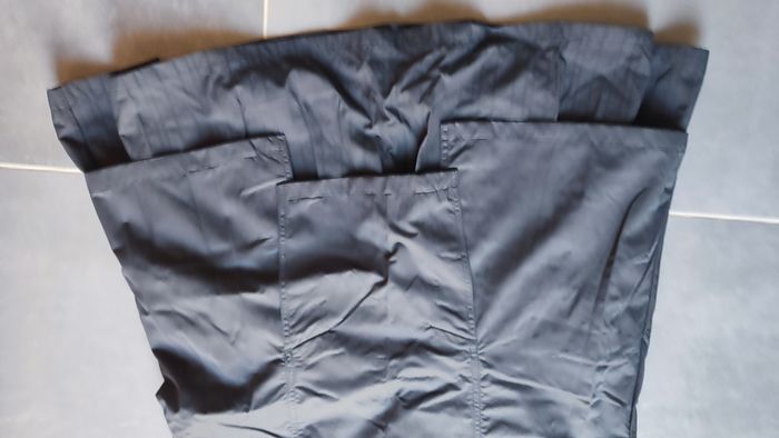 en excellent état effet satiné et original superposition de tissus longueur 80cm 2 poches devant fermeture sur l'arrière