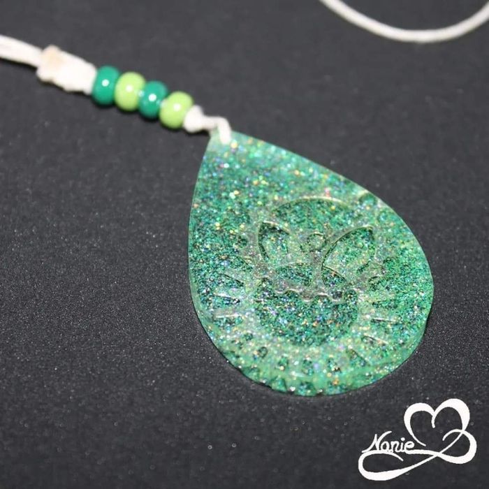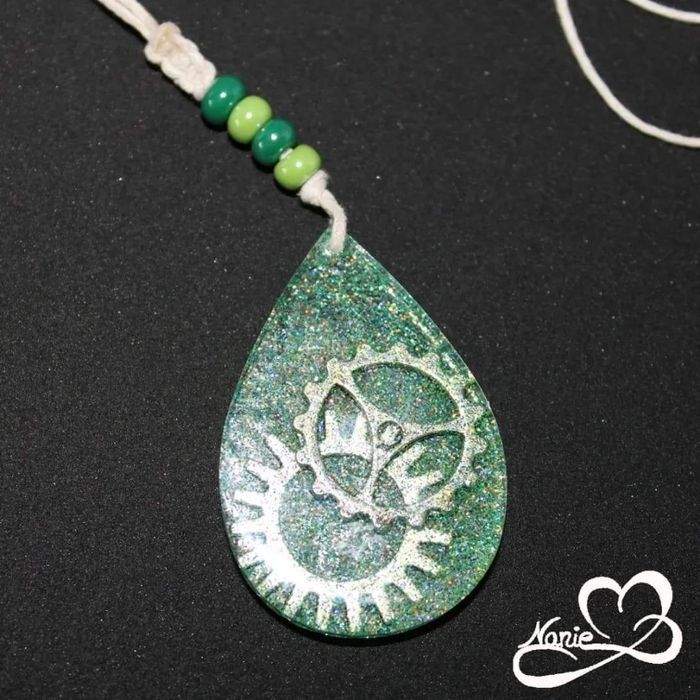 Pendentif en résine avec perles et encrenages !!