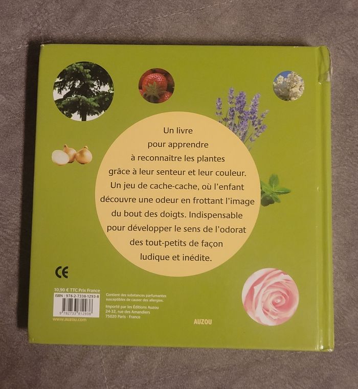 Bonjour, Je vends ce livre nommé - Mon Premier Livre Des Odeurs Et Des Couleurs - Dans Mon Jardin Orianne Lallemand - en bon état. Si vous rechercher un livre ou un acteur en particulier et pour gagner du temps, n'hésitez pas à me le demander, je vous répondrais dès que possible 😇 Veuillez vous abonner pour recevoir toutes les nouveautés Pour autres infos n'hésitez pas à me contacter. ***** Merci de votre visite *****