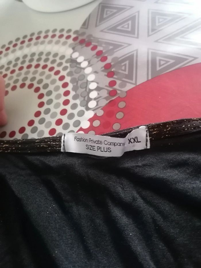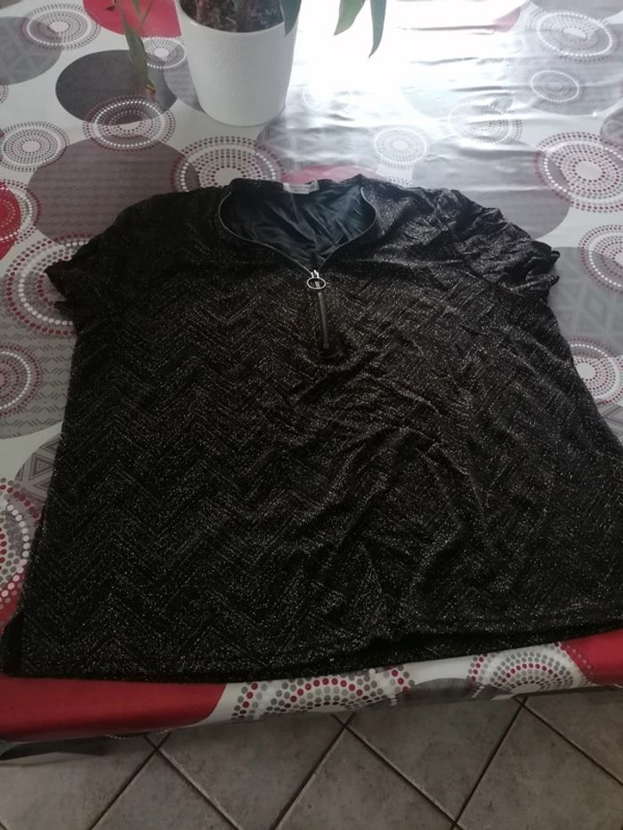 En parfait état. T-shirt manches courtes avec paillettes. Taille XXL. Marque Fashion private company. Avec fermeture pour ouvrir ou fermer le décolleté
