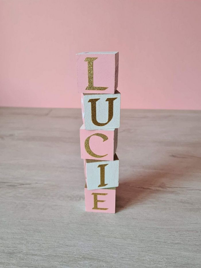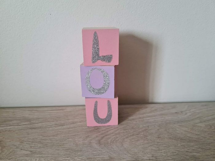 Cubes prénom 5€ le cube, par exemple pour un prénom de 5 lettres => 25€ Coloris au choix à voir ensemble Envoi rapide