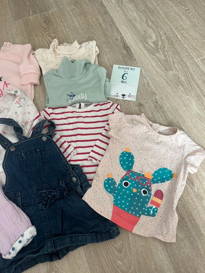 Taille 6 mois comprenant : - 2 pulls (primark) - 1 haut manches longues (kiabi) - 2 bodys col roulé (kiabi) - 1 haut manches courtes (DPAM) - 1 pantalon (lulu castagnette) - 1 robe en jean (obaibi) #6moisbeautylia
