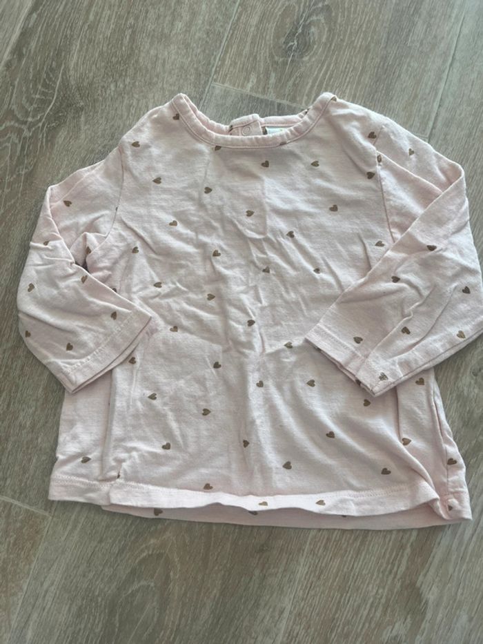 Haut manches longues rose clair avec des petits cœurs 12 mois tape à l’œil