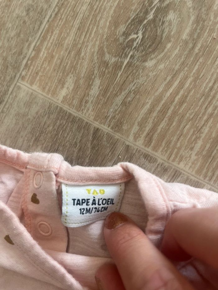 Haut manches longues rose clair avec des petits cœurs 12 mois tape à l’œil - photo numéro 2
