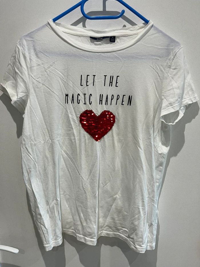 TEE shirt blanc Sequins réversibles rouge et argent Taille M #38beautylia