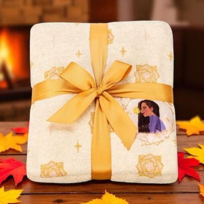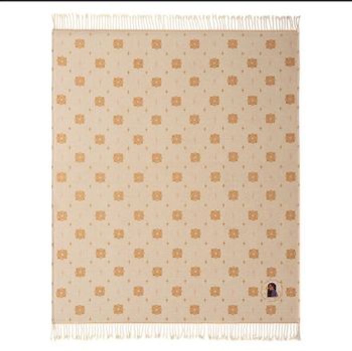 Magnifique jeté en tissu chenille qui comprend un appliqué Asha et l’étoile avec broderies dorées dans le coin et un motif étoilé tissé intégral recto verso.