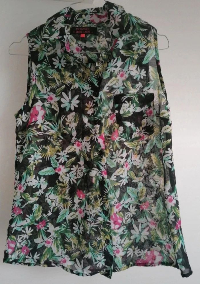 Joli haut de chez Cache Cache Sans manche 1 poche sur le devant 1 pli dans le dos Fermeture par boutons Comme neuf