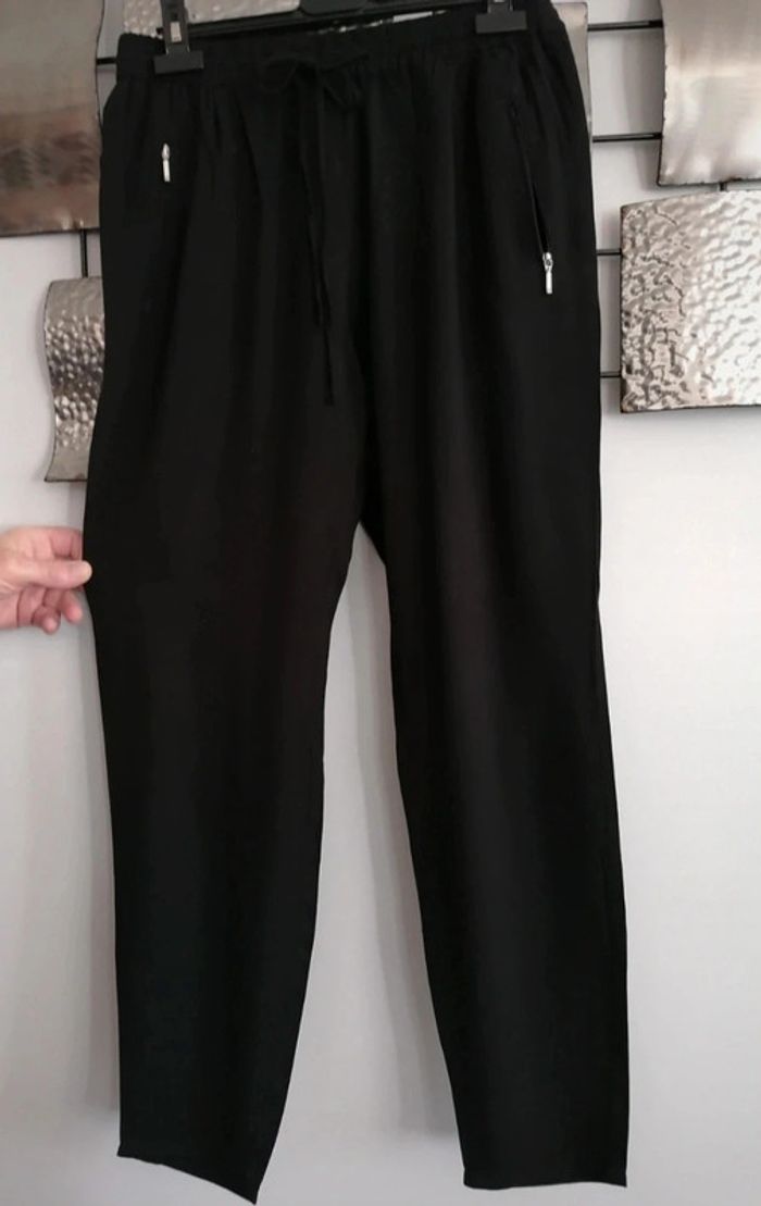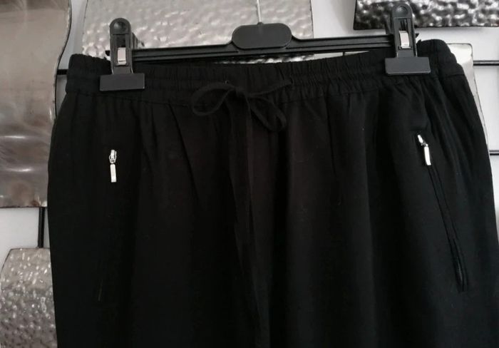 Pantalon noir 3 poches zippées Coton fin En excellent état. Ne pas tenir compte des reflets des photos