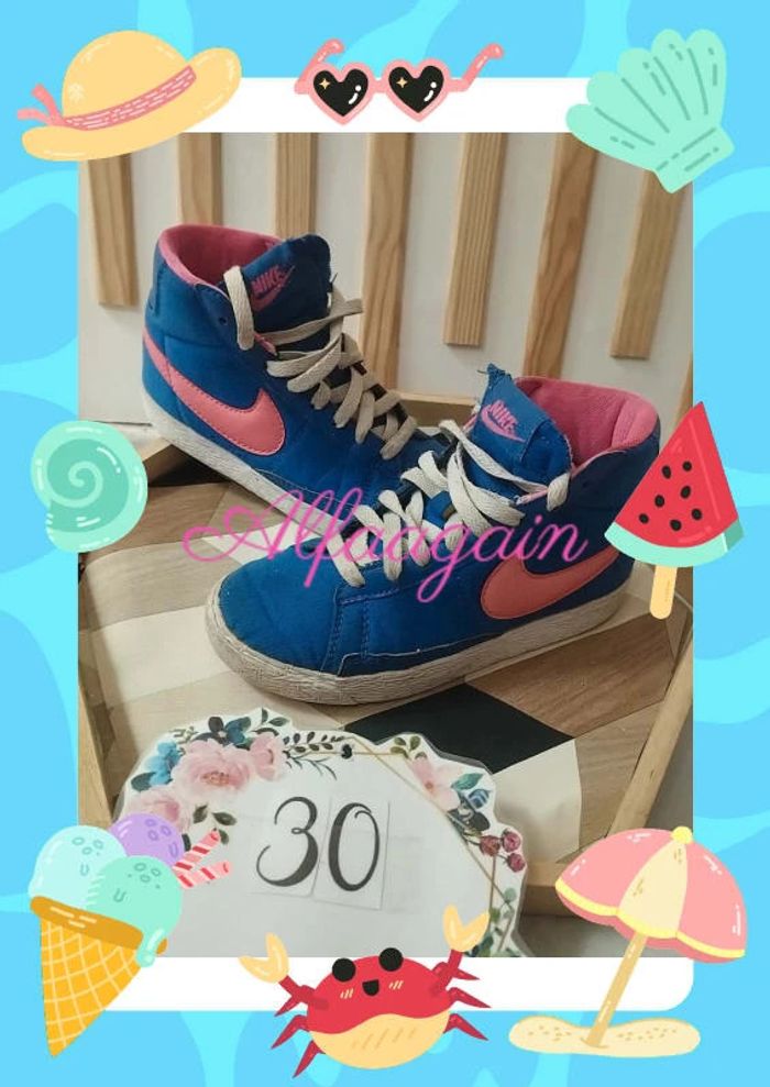 Baskets bleues logo roses. À lacets . Taille 30 . Très bon état portées plusieurs fois. Marque Nike A vendre 18€ --------------------------- ✏️Informations générales ✏️ 📩Expédition dans la journée en général -hors weekend. 🚭Maison non fumeur / sans animaux 📅Pas de réservation 📸Pas de photo porté 👛 Bon plan Envoi à 99ct (+20% récupéré en bon d'achat) possible uniquement pour les français- me contacter pour plus d'infos 😉 #alfaagain30shoesfille #nike
