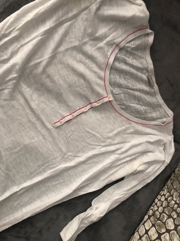 vends pull fin esprit taille xl blanc avec liseret rose très bon état