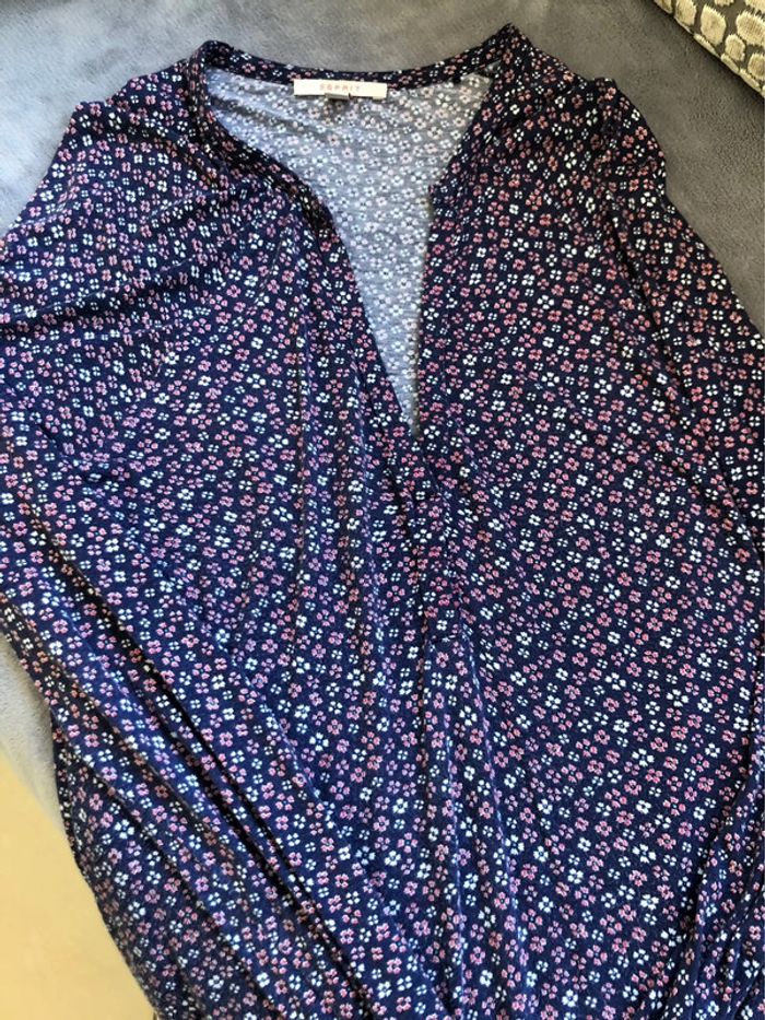 vends blouse femme esprit taille L bleu marine et rose très bon état