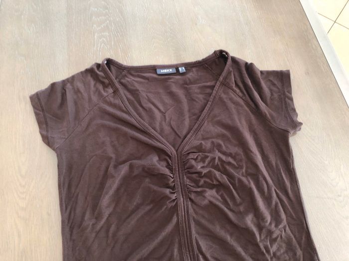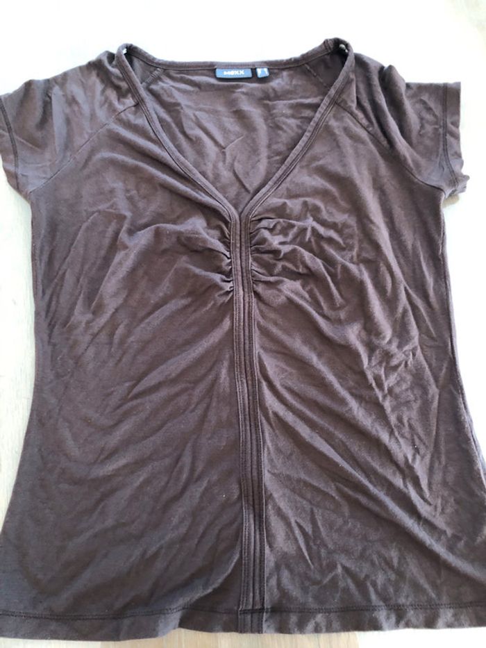 vends tee shirt femme mexx taille L marron col v fluide très bon état