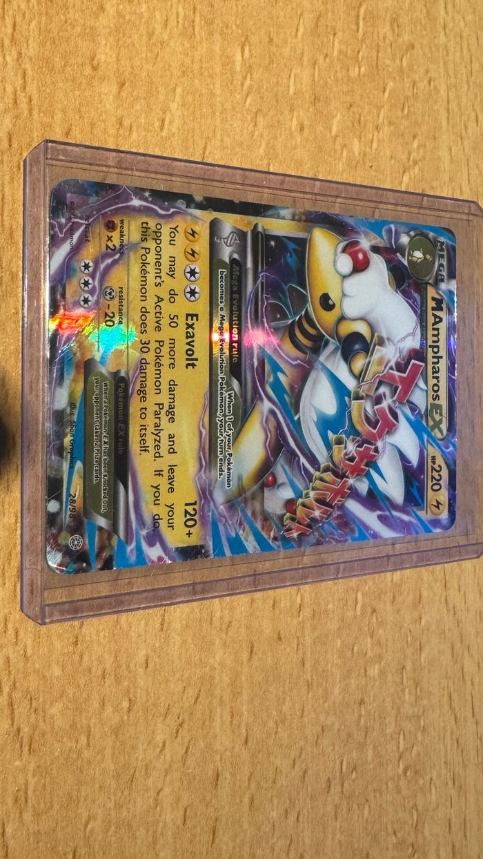 Mega AMPHAROS ex (!carte anglaise!) bon état dans l'ensemble , bord blanc sur quasi tout le contour (achetée dans l'état) sous sleeve toploader