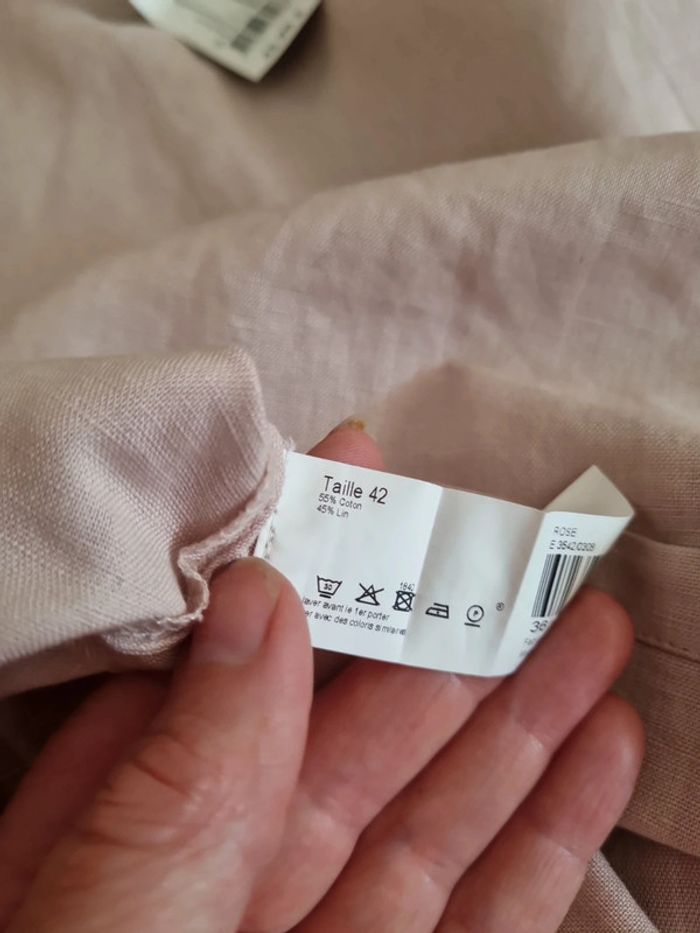 Robe courte 55% coton/ 45% lin Coupe droite. Couleur beige rosée Valeur 45,99€ Taille 42