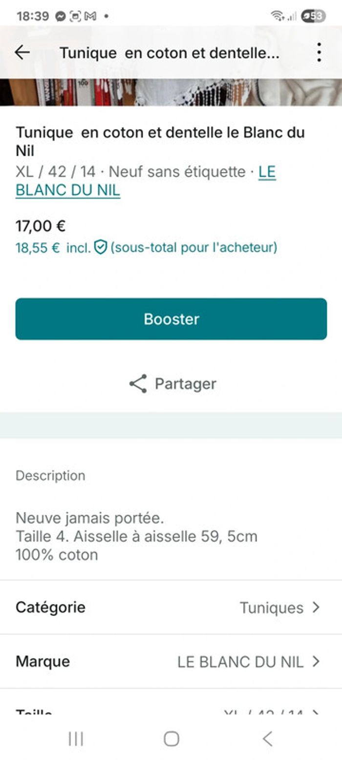 Tunique le Blanc du Nil coton et dentelle T 4 - photo numéro 7