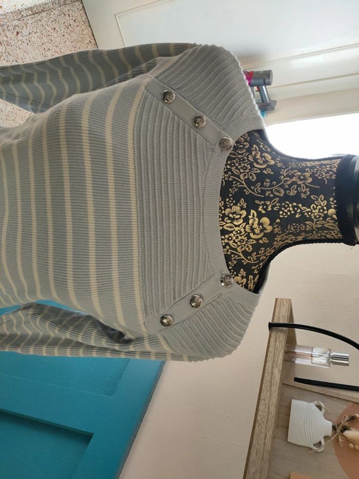 Pull Lauren by Ralph Lauren Col rond Taille L Bleu clair à rayures blanches Excellent état très très peu porté