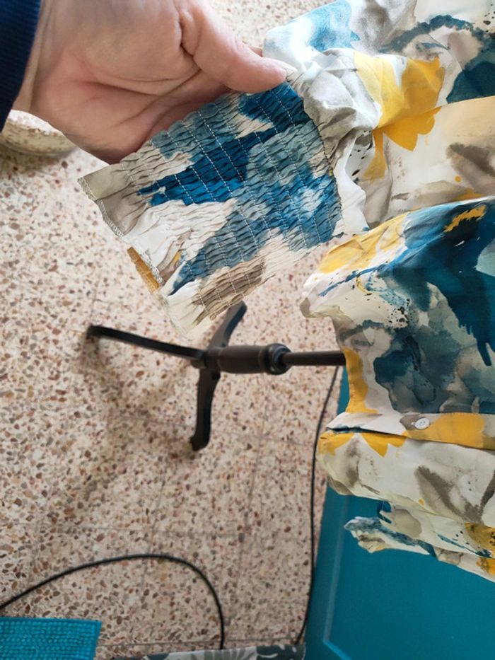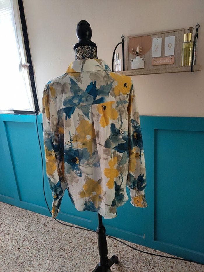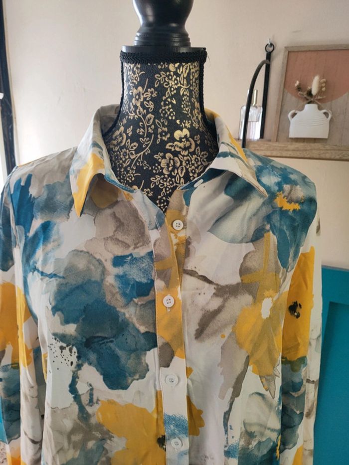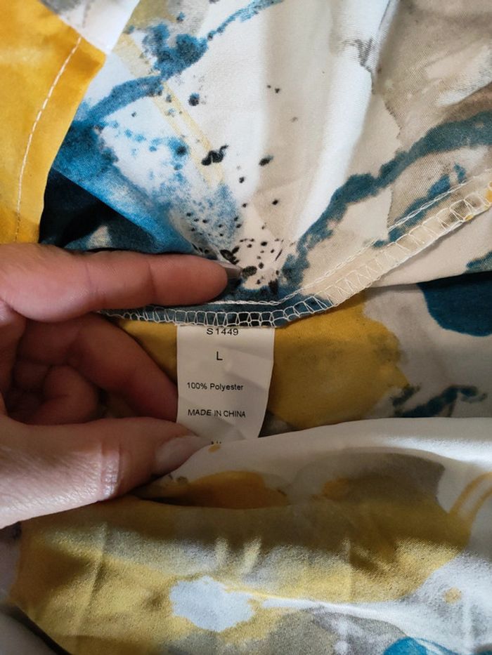 Blouse TAILLE L Excellent état porté uniquement pour essayer. Bleu, jaune et blanc