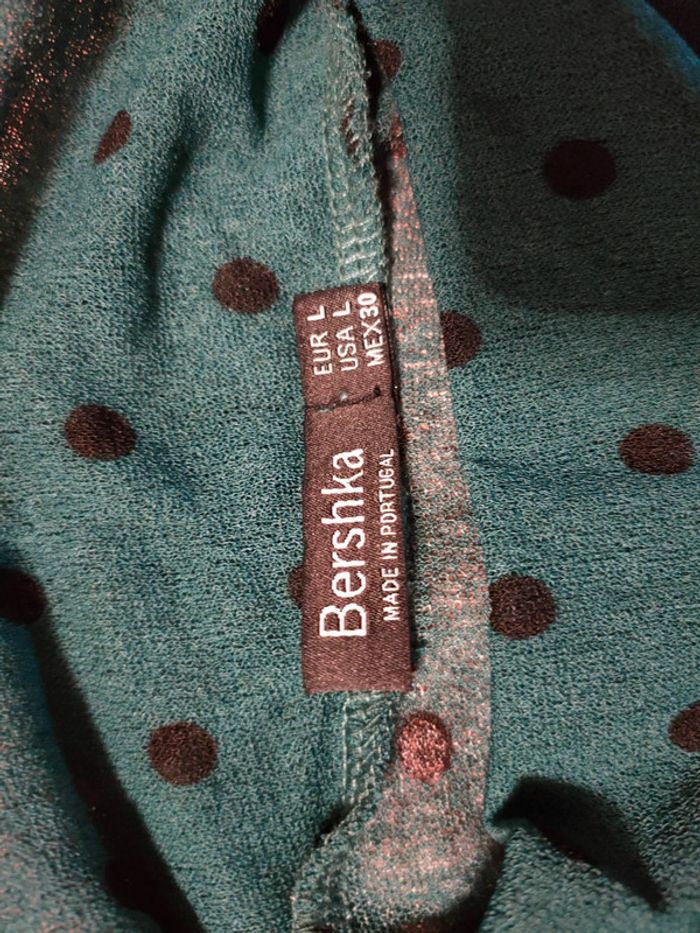 T-shirt manches longues vert foncé à pois noir. En transparence. Marque Bershka Taille L Jamais porté
