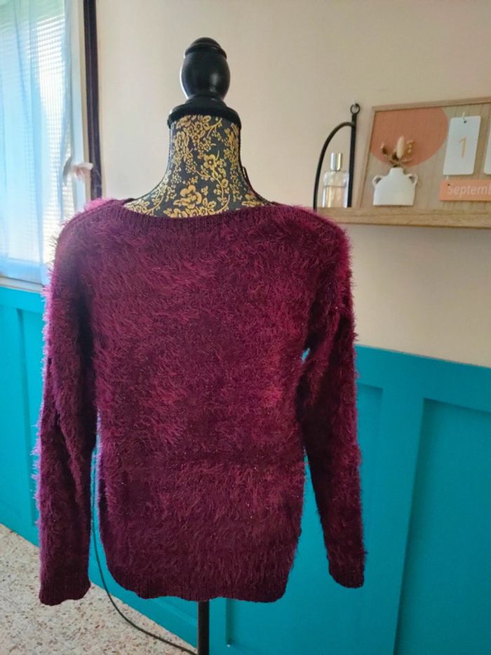 Pull hiver col rond Couleur prune Taille 3 soit 40 Excellent état