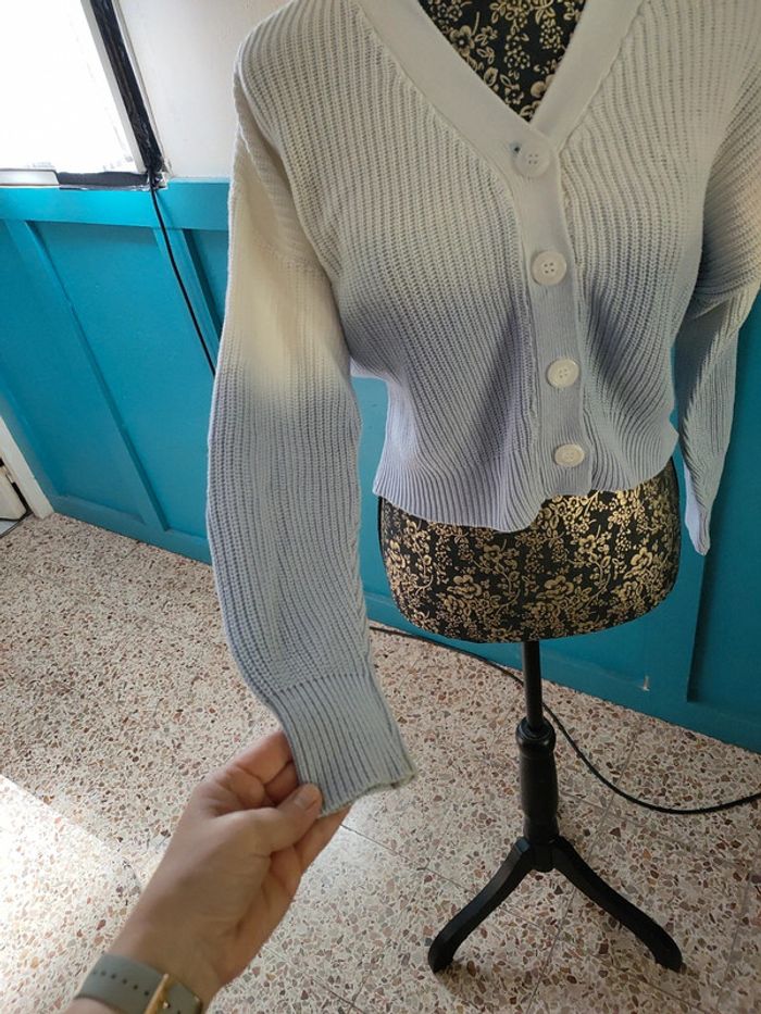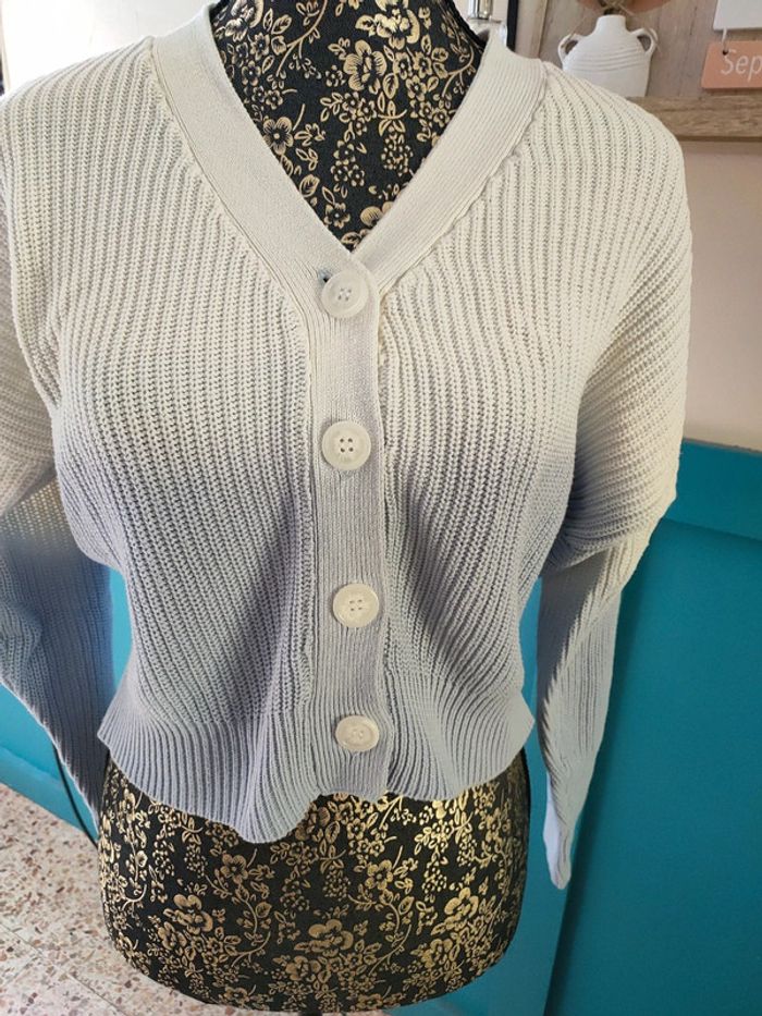Gilet en maille cropped Blanc et bleu clair Marque Jennyfer Taille M Excellent état
