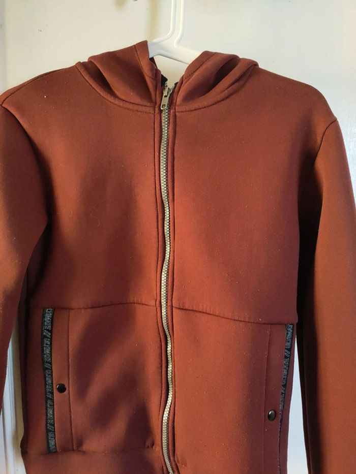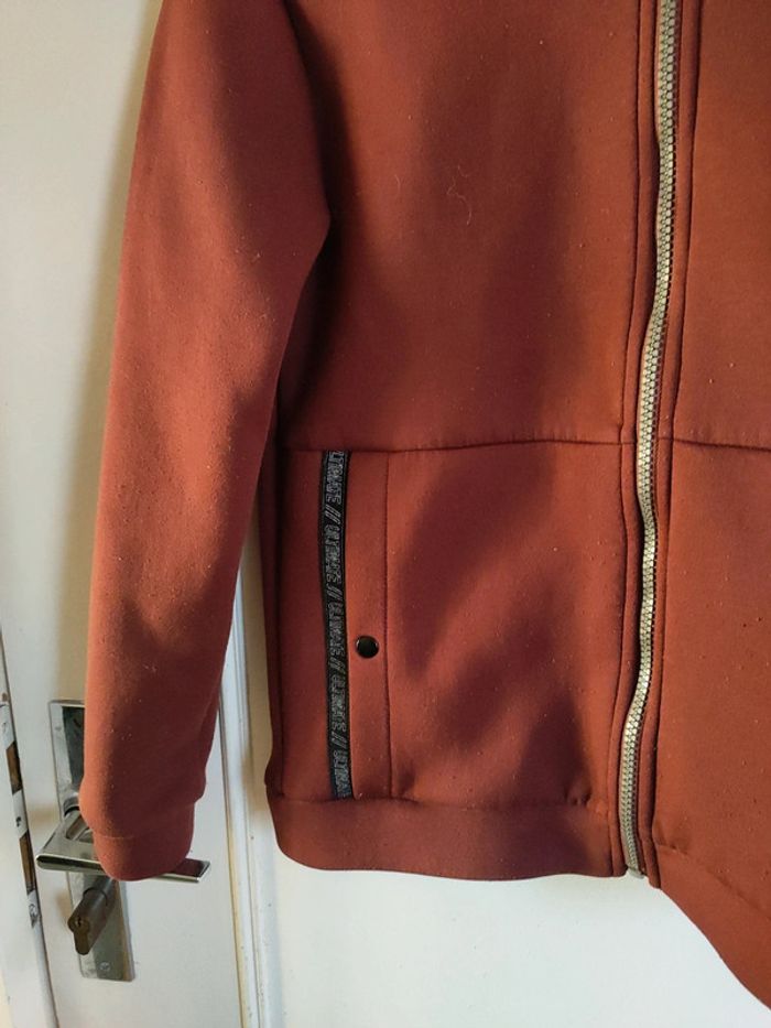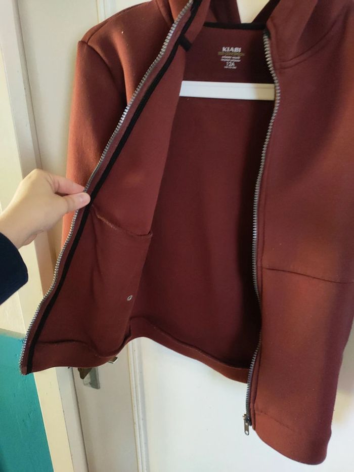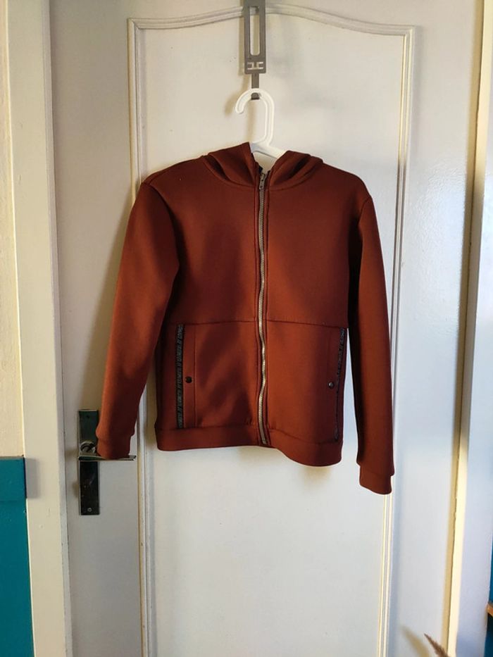 Sweat à capuche Couleur marron brique Taille 12 ans Kiabi Excellent état Fermeture éclair 2 vraies poches de chaque côté qui se ferment avec un bouton poussoir