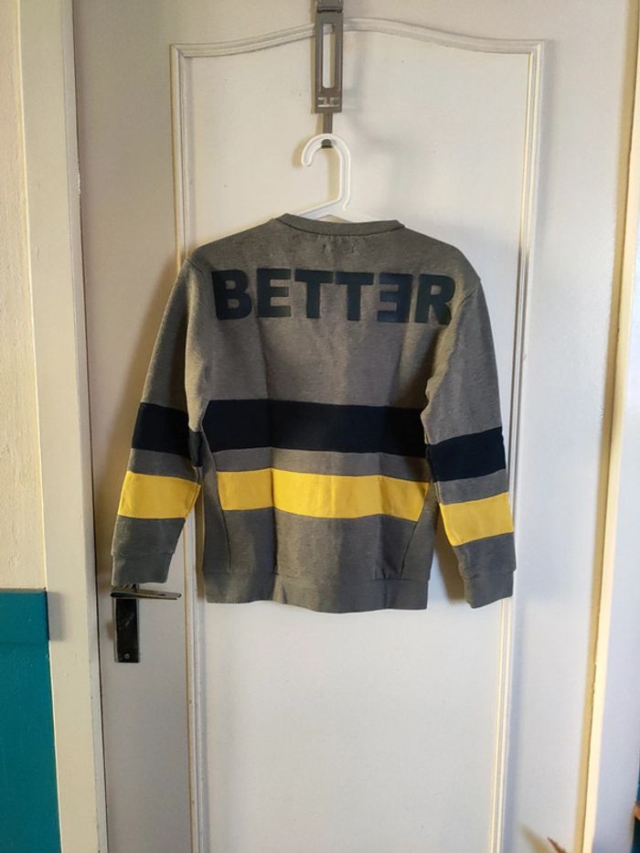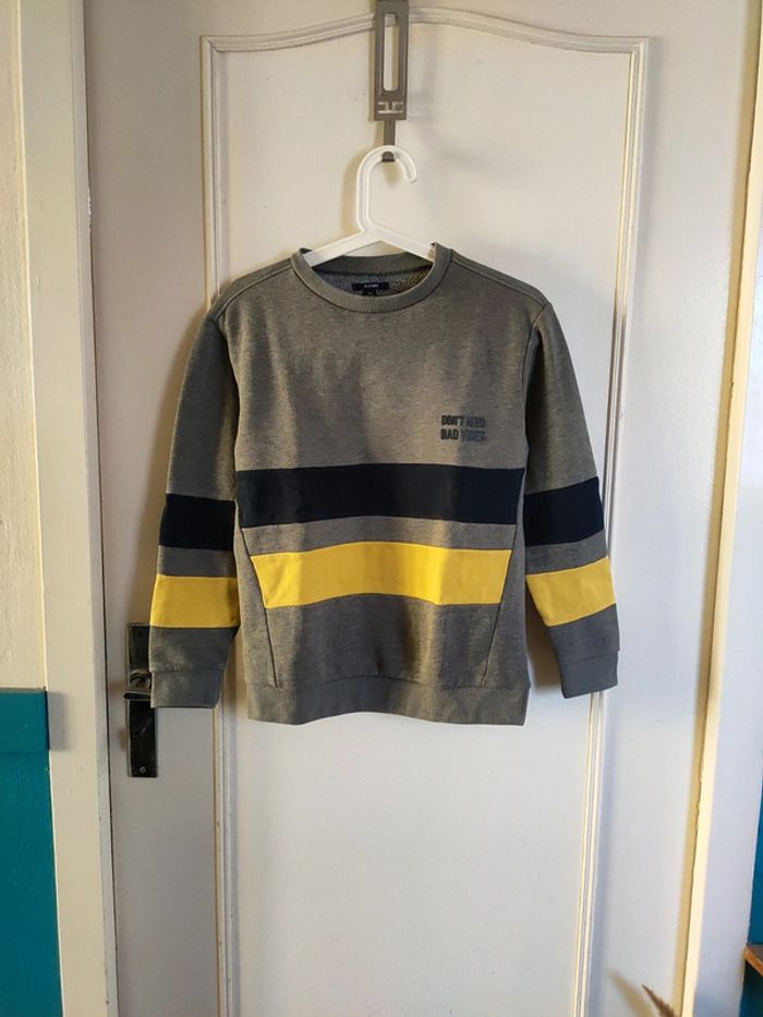 Sweat gris, jaune et noir Marque Kiabi Taille 12 ans Excellent état