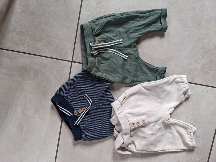 Parfait état, peu porté. Acheté neuf il y a 1 mois. Prix neuf 8€. Pantalon style sarouel. Le blanc à bretelles n'a jamais été porté.