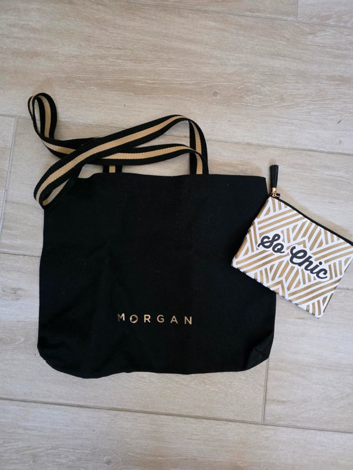 Sac Morgan en coton et pochette. Très bon état Envoi par mondial relay en 24/48h, concernant les autres transporteurs, le délai est un peu plus long. #morgane3007sac