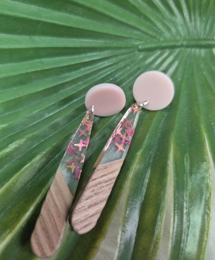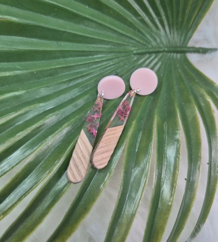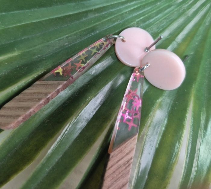 Boucles d’oreilles résine et bois 🤩 - Bijoux - Créations - Bois - Résine ✨ - photo numéro 1