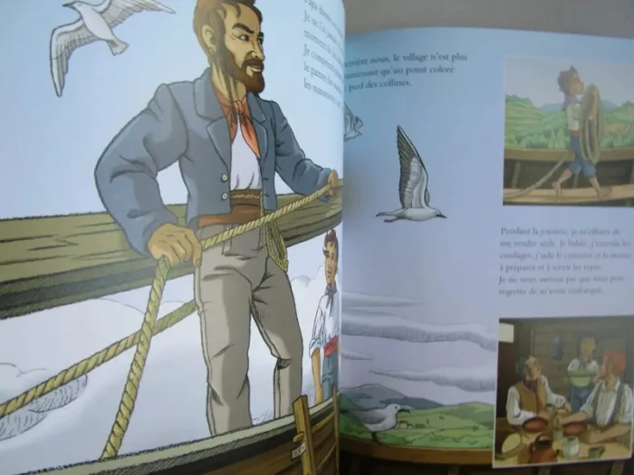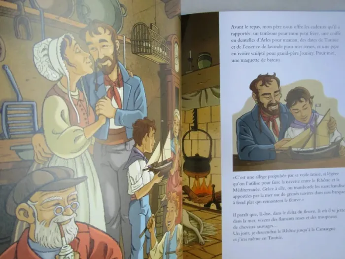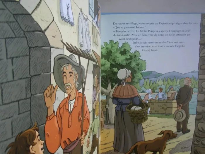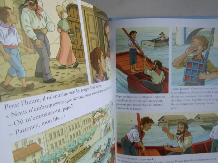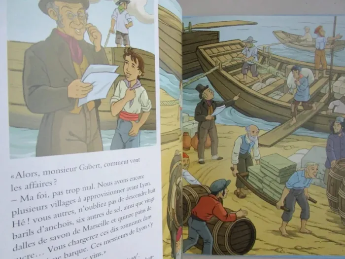 Printemps 1829, dans un village des bords du Rhône, entre Lyon et Valence. Jean attend le retour de son père, un patron marinier respecté de tous. À bord de son bateau halé par des chevaux le long des berges, il transporte toutes sortes de marchandises : blé, charbon, étoffes, sel, sucre, savon, tonneaux de vin, barils d'anchois... Il transmet aussi des messages aux riverains. Jean rêve de faire la " décize ", la descente du Rhône, avec lui. Pendant son absence, il a sculpté un beau calvaire en bois. Admiratif et pour le récompenser, son père l'embarque plus tôt que prévu. Direction : Lyon. Là-bas, une surprise attend Jean... Couverture rigide Éditeur ‏ : ‎ Ecole des Loisirs 48 pages Âge de lecture ‏ : ‎ 7 - 11 ans Dimensions ‏ : ‎ 22.5 x 0.9 x 29 cm Livre en très bon état (Une légère rayure sur la couverture) Je vends d'autres livres de l'école des loisirs #phil_peg_écoledesloisirs Si plusieurs livres vous intéressent, n'hésitez pas à m'envoyer un message afin que je vous fasse un lot et ainsi bénéficier de réduction. #écoledesloisirs #bateau #France #Histoire : 19e siècle #métiers divers #vie rurale #rhône #lyon